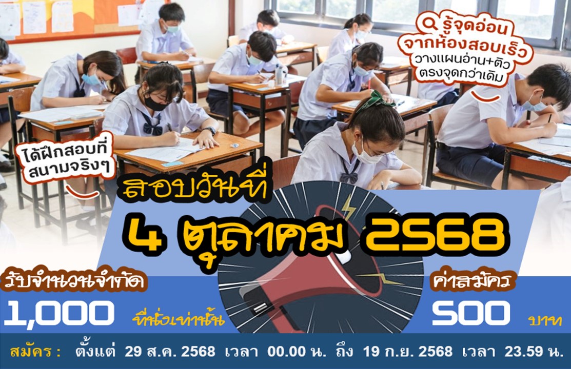 | ตั้งแต่ 26 กันยายน 2568 เป็นต้นไป | พิมพ์ "บัตรประจำตัวสอบ" |